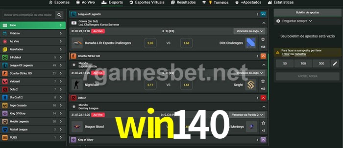 A aposta win140 oferece aos jogadores a experiência mais conveniente de apostas em eSports!